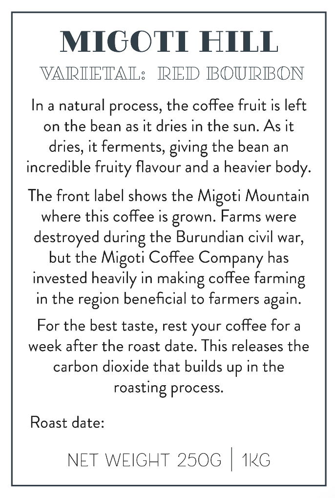On top of the info about natural and washed coffees, we could do a bit more education about the context of production of the coffee. Where does our coffee come from? Why is a bean from Kenya different than a bean from Burundi? What is the history of coffee in Burundi?