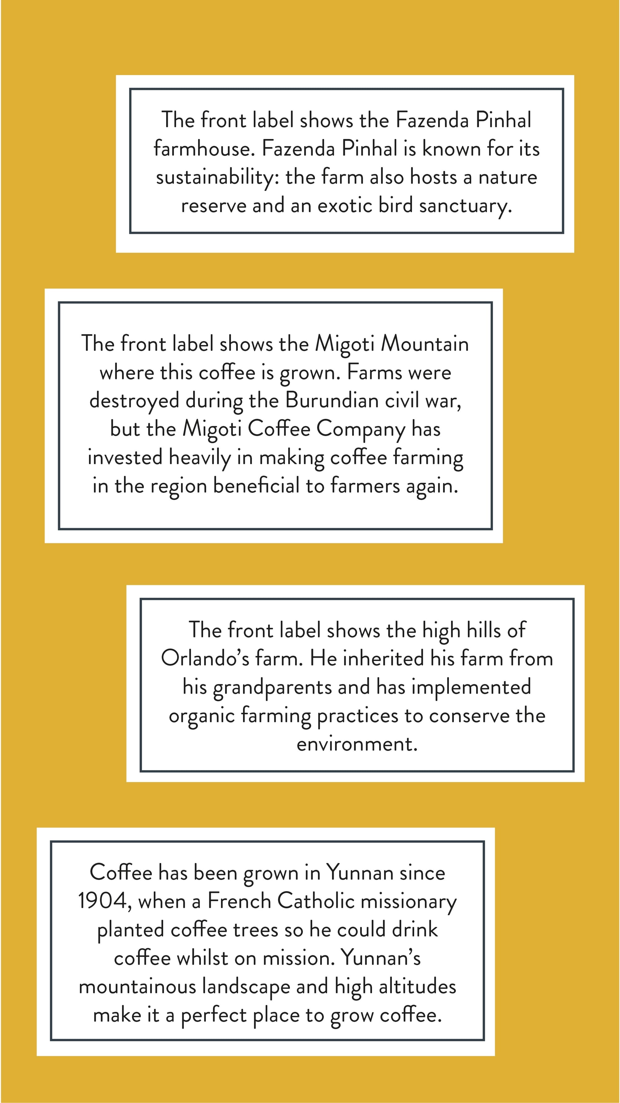 I got to learn so much about each of these coffees, the farms they were grown on, the risks they faced, the political and social context that coffee existed in within that place-and work out how to communicate a slice of that in about five lines.
